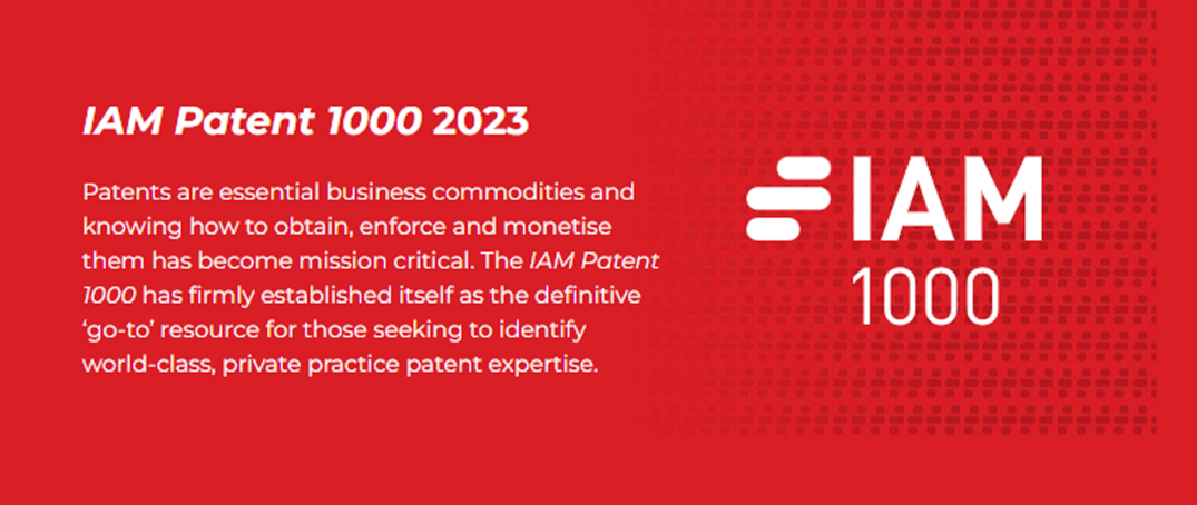 《IAM 全球?qū)@?000強》(IAM PATENT 1000)專注于在全球范圍內(nèi)推薦一流的專利事務(wù)所與專利專家,為全球?qū)@麖臉I(yè)人員提供了權(quán)威的價值參考。其調(diào)研人員駐香港及英國倫敦,每年歷時五個月針對全球數(shù)十個國家和地區(qū)的1800余位律師、專利代理師和公司法務(wù)開展調(diào)研,涉及專利申請、專利許可、專利商業(yè)化以及專利訴訟等領(lǐng)域。