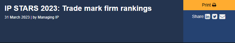 此前,“2023年度 IP STARS 商標(biāo)榜單”已于今年3月公布,華進憑借專業(yè)的商標(biāo)團隊和高質(zhì)量的客戶服務(wù)能力,榮膺2023年中國區(qū)商標(biāo)確權(quán)領(lǐng)域(Trade mark prosecution - domestic firms 2023)“知識產(chǎn)權(quán)之星”(IP STARS)推薦事務(wù)所。