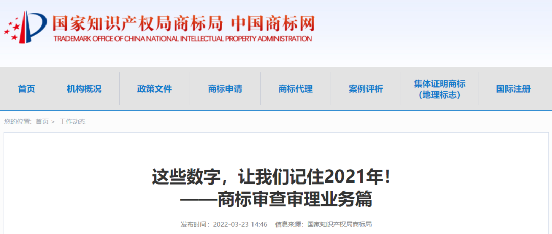 這一年,商標局認真落實國家知識產權局“八大專項行動”和“百項實踐活動”等12項任務,并延伸拓展服務群眾的20項具體舉措,積極為群眾排憂解難;統(tǒng)籌推進“八項改革”,穩(wěn)步推進商標審查審理提質增效,積極運用商標工作服務經(jīng)濟高質量發(fā)展。商標局與各地方商標審查協(xié)作中心在建黨百年的偉大時刻交出了屬于商標人的一份合格答卷。今天,我們用這些數(shù)字回顧2021年,記住商標人在“十四五”開局之年作出的積極貢獻!