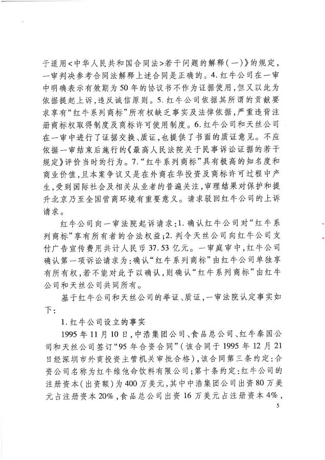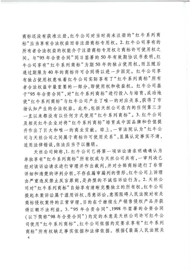 對此,中國紅牛表示不服并向最高法提起上訴。2020年4月,最高法對此立案,并依法組成了合議庭公開審理。