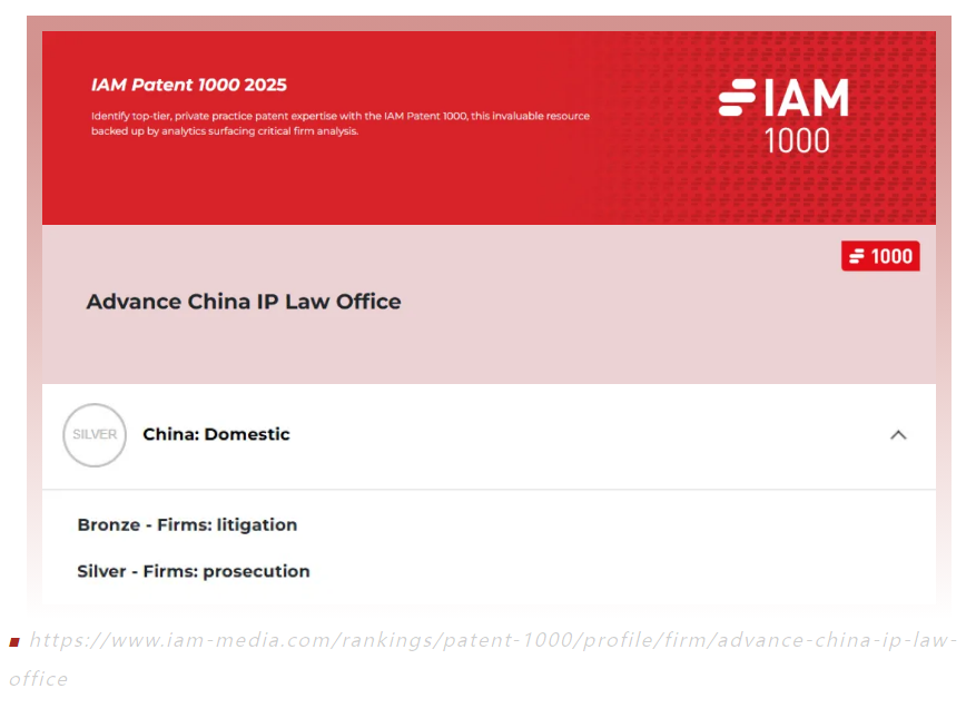 近日,國(guó)際知名知識(shí)產(chǎn)權(quán)媒體《知識(shí)產(chǎn)權(quán)管理》(Intellectual Asset Management, IAM)公布了2025年度全球?qū)@?000強(qiáng)榜單(IAM Patent 1000)。華進(jìn)知識(shí)產(chǎn)權(quán)憑借在專利代理服務(wù)領(lǐng)域的綜合能力,再次榮登中國(guó)-國(guó)內(nèi)所(CHINA: DOMESTIC)榜單,獲得專利申請(qǐng)領(lǐng)域銀牌評(píng)級(jí)(Silver - Firms: prosecution)以及專利訴訟領(lǐng)域銅牌評(píng)級(jí)(Bronze - Firms: litigation),這是自2019年以來(lái)華進(jìn)第7年上榜。