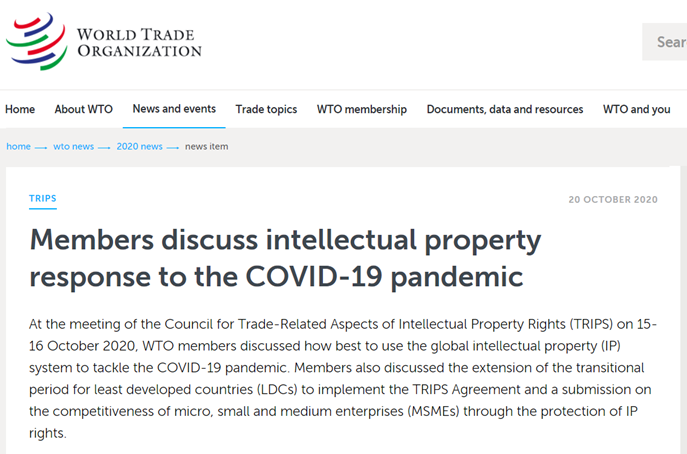 但是,對(duì)于一些沒(méi)有疫苗、沒(méi)有能力研制疫苗的發(fā)展中國(guó)家來(lái)說(shuō),自然希望通過(guò)WTO的《TRIPS協(xié)定》和公共干預(yù)以低成本實(shí)現(xiàn)新冠疫苗的普及,以應(yīng)對(duì)緊急的公共需求。