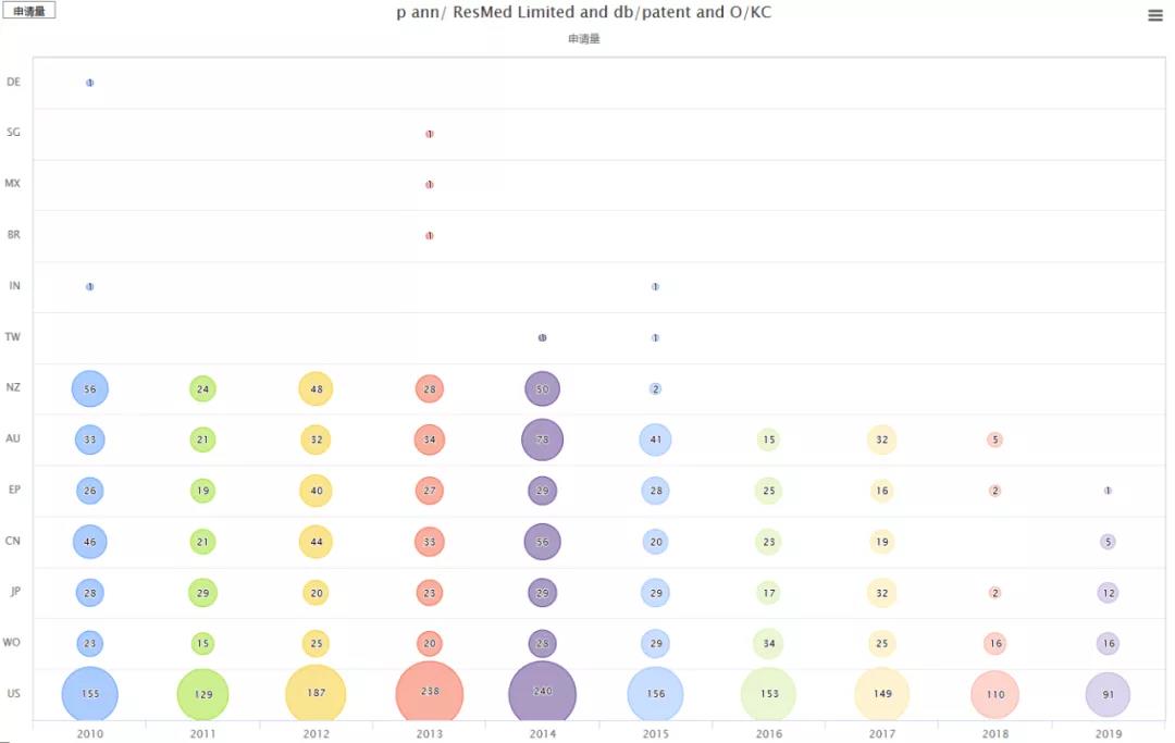 數(shù)據(jù)來(lái)源:PATENTICS   美國(guó)偉康后改名飛利浦偉康,數(shù)據(jù)僅取自標(biāo)準(zhǔn)申請(qǐng)人Respironics