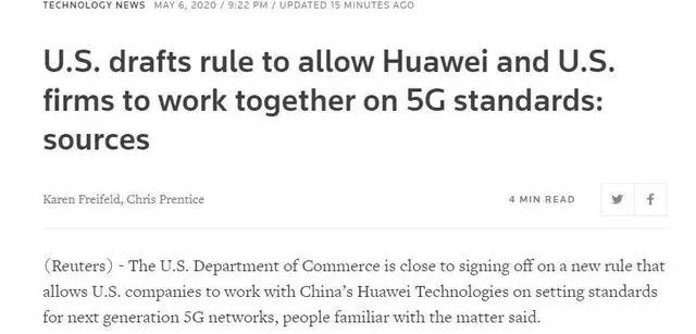 美國擬允許美企與華為合作制定5G標(biāo)準(zhǔn)