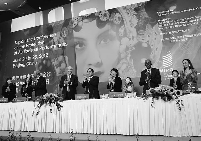《北京條約》的誕生,標(biāo)志著談判了近20年的視聽表演者版權(quán)保護的國際新條約終于修成正果。華東政法大學(xué)教授王遷說:“世界知識產(chǎn)權(quán)組織是從1994年開始討論表演者國際保護這個問題的?!倍@一條約的談判過程極為艱辛,從1994年展開討論開始,美國和歐共體兩大利益方即產(chǎn)生了嚴(yán)重分歧,并導(dǎo)致世界知識產(chǎn)權(quán)組織于1996年和2000年召開的兩次外交會議均未能實現(xiàn)充分保護視聽表演者的目標(biāo)。從2001年到2011年,經(jīng)過多國艱苦卓絕的努力,世界知識產(chǎn)權(quán)組織成員國的溝通、協(xié)調(diào)和磋商,最終才就條約文本初步達成一致意見。2012年12月1日,經(jīng)世界知識產(chǎn)權(quán)組織成員國會議表決,一致同意外交會議在北京召開。