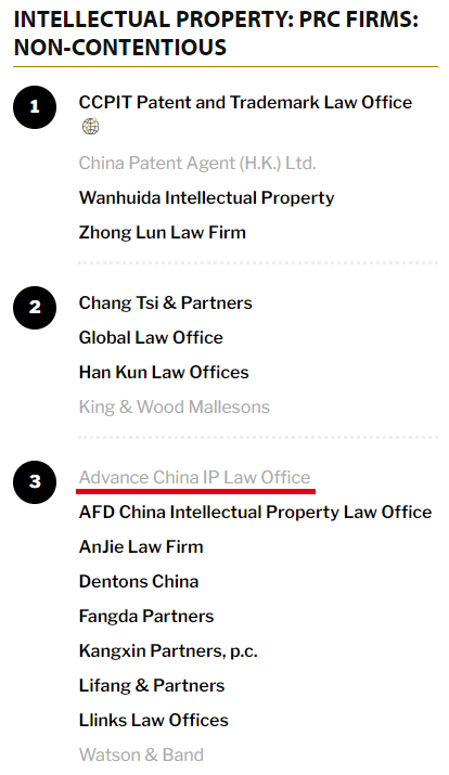 入榜 | The Legal 500:Intellectual Property: PRC FIRMS