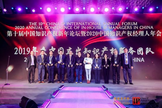 華進(jìn)知識產(chǎn)權(quán)高級合伙人黎葉、合伙人鄭露、雷佩玲、哈達(dá)等人受邀出席本屆新年論壇的頒獎盛典。典禮上,華進(jìn)知識產(chǎn)權(quán)憑借卓越實(shí)力再次榮獲“2019中國杰出知識產(chǎn)權(quán)服務(wù)團(tuán)隊(duì)”稱號,哈達(dá)作為代表上臺領(lǐng)獎。值得一提的是,這已是華進(jìn)知識產(chǎn)權(quán)第四次獲此殊榮。