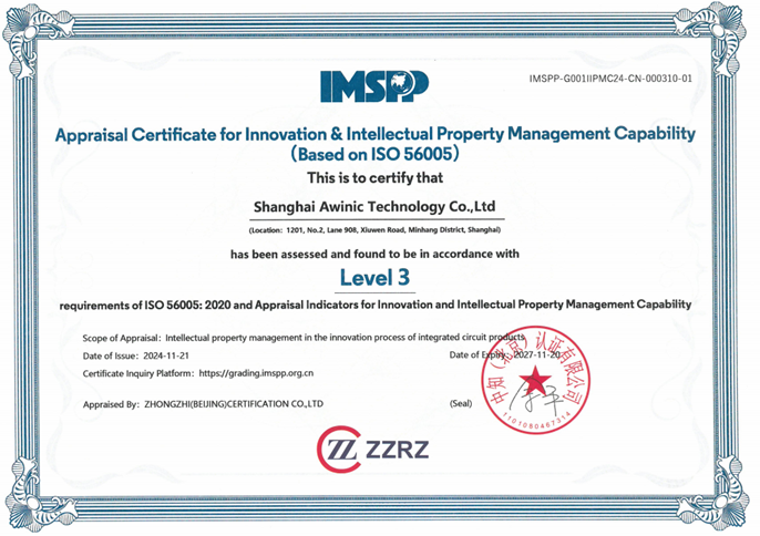ISO56005《創(chuàng)新與知識(shí)產(chǎn)權(quán)管理能力》國(guó)際標(biāo)準(zhǔn),旨在幫助企業(yè)建立和完善創(chuàng)新與知識(shí)產(chǎn)權(quán)管理體系,提升企業(yè)的核心競(jìng)爭(zhēng)力。三級(jí)等級(jí)證書的獲得,意味著艾為電子在創(chuàng)新戰(zhàn)略規(guī)劃、創(chuàng)新過程管理、知識(shí)產(chǎn)權(quán)創(chuàng)造、運(yùn)用、保護(hù)和管理等方面均達(dá)到了國(guó)際先進(jìn)水平,為公司的可持續(xù)發(fā)展奠定了堅(jiān)實(shí)的基礎(chǔ)。